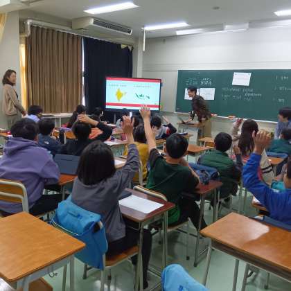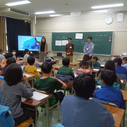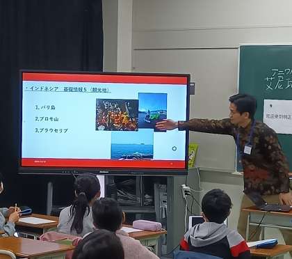 昨日に引き続き国士舘大学から2名の留学生をお招きし、特別授業を行いました。はじめに5年生から明正小の紹介がありました。次に留学生から自己紹介をしてもらいました。インドネシアと中国、それぞれの出身国の紹介、食べ物、名所、日本に来た理由など、興味深いことばかりでした。子どもたちも、初めて知ったことが多かった、2つの国のことをしれてよかったという感想でした。