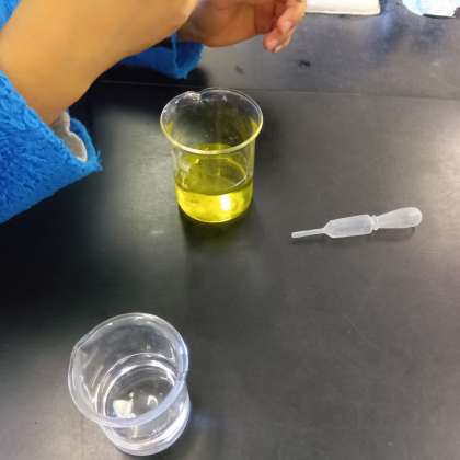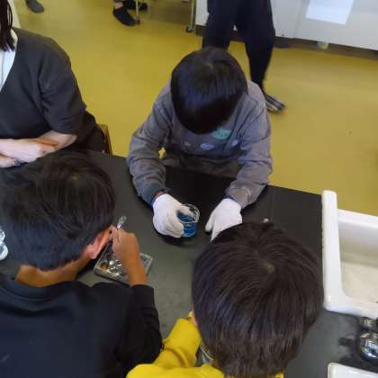 クリスマスワークショップ、午後の部では理科実験も行われました。色水を作る実験です。水道水があっという間に鮮やかな色に変わっていました!