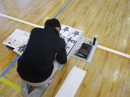 5・6年生の書き初め会では、みんな、真剣に取り組んでいました。「どっちの方がいい?」「こっちは『はね』がうまくいったけど、名前が小さい。」と悩む声も聞こえます。特に、6年生は最後の小学校での書き初めなので、特に、やる気が伝わってきました。最後まで残って丁寧に名前を書いてる姿に、心がジーンとしました。