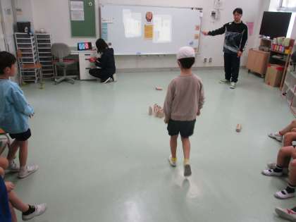 ひまわり学級では「モルック」を楽しみました。「モルック」は、フィンランドの伝統的なゲームがもとになっている子どもも大人も楽しめるスポーツだそうです。チームに分かれて投げる順番を相談したり、「ドンマイ!」「大丈夫!」などの声を掛け合ったり、とても楽しそうでした。負けてしまって悔しい場面もあったようですが、次回またがんばってくださいね。