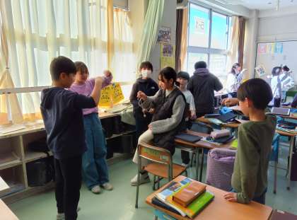 「なぜだろう?」と友達と話し合いながら、友達のふりこも見ながら、速さと長さの関係に迫っていました。