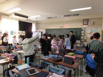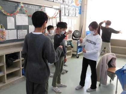 5年生の理科で「ふりこの性質」の学習をしています。日常生活の中で、振り子の性質を利用したものにはどんなものがあるのか考えました。そして、たこ糸にビー玉などのおもりをつるして振り子を作りました。メトロノームのリズムに合わせて動くように、おもりの重さや糸の長さを変えて実験しました。おもりの重さ糸の長さによってどのような変化があるのか考え、話し合いながら実験することができました。