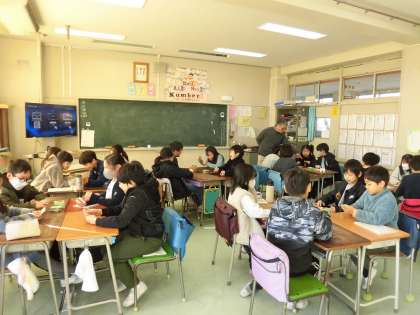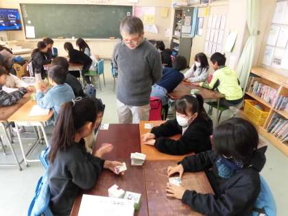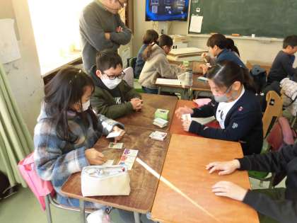 3年生の日本語では、百人一首かるたで坊主めくりをグループで楽しみました。坊主が出たら「わー、出ちゃったよー!」、姫が出たら「やったー、やったー!!」と大きな声が教室に響いていました。最後まで何があるかわからない、ワクワクドキドキ感を楽しみました。大盛り上がりの坊主めくり遊びになりました。
