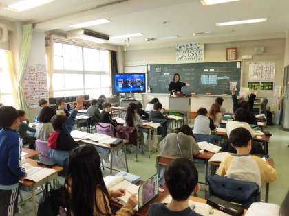 2年生の算数では、「1000より大きい数」の学習をしています。まずは、100のまとまりに注目して、2300の数の仕組みについて考えました。100のまとまりで考えることで、1000より大きい数の大きさをとらえることができました。3桁と3桁の数のたし算やひき算の学習でも、100のまとまりに注目すると計算が簡単にできることを見つけました。積極的に手を挙げて、考え方を発表する様子が見られ、とても活発で意欲的に学習しています。