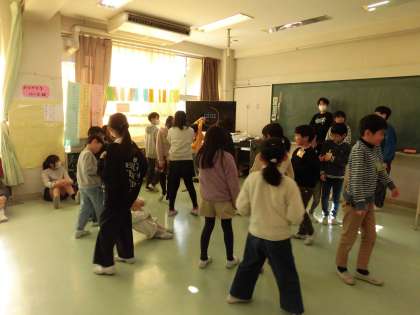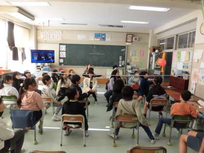 今日は縦割り班活動が行われました。5年生が企画、準備をして、各班に分かれてゲームなどを楽しみました。校庭で活動した班は、ドッジボールで盛り上がり、班ごとに声を掛け合って楽しみました。少し汗ばむほど、体を動かすことができたようです。教室では、風船バレー、ばくだんゲーム、ウィンクキラー、いす取りゲームなど、さまざまなゲームを行いました。どの班も、1年生から6年生まで、みんなが笑顔で楽しむことができるように工夫され、ますます親睦を深めることができたようです。