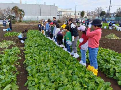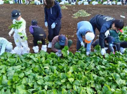 小松菜とりスタートです!すごい量なので、みんな必死です!