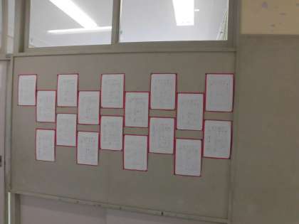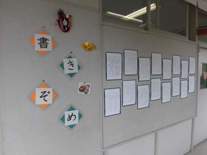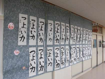 今週から書き初め展が始まり、各教室の前には、書き初め会で書いた作品が展示されています。1年生と2年生の硬筆の書き初め、3年生は初めての毛筆で取り組んだ書き初め「つよい力」が展示されています。どの作品も心を込めて、丁寧に書いたことがよくわかる素晴らしいものばかりです。学校にお越しの際は、ぜひじっくりとご覧ください。