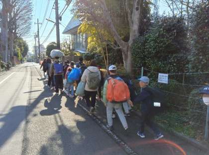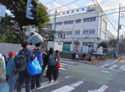 たくさんの小松菜をリュックに積み込み学校に戻ってきました。大きな事故やけがなく戻って来れました。