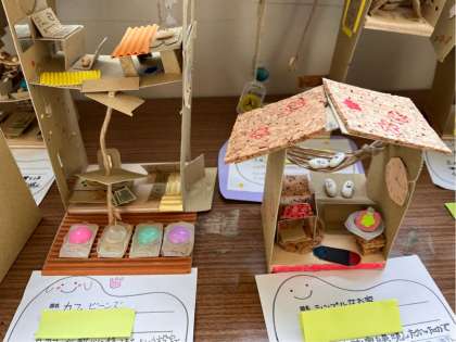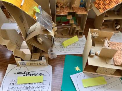 5年生が図工で作っていた「ビーンズハウス」が完成しました。細かい所まで丁寧に作っていて驚きです。鑑賞会の後は展示しています。ぜひ、学校公開の時などにご覧ください。