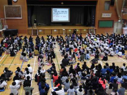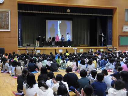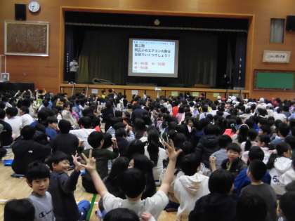 今日の全校集会は、集会委員による児童集会でした。体育館に全校生徒が集まり、「明生小クイズ!」大会が行われました。明正小の階段の数は?エアコンの数は??廊下の長さは???など、意外と知らない明正小の豆知識をクイズで楽しく知ることができました。正解して大喜びする声、意外な答えにびっくりする声が体育館に響き、とても楽しい児童集会となりました。