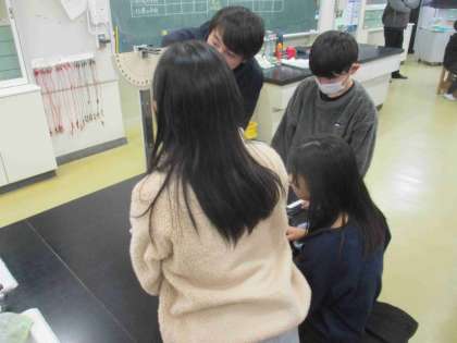 5年生は、理科で、ふりこの性質について学習しています。ふりこが1往復する時間は、何によって変わるのか、「ふりこの長さ」「おもりの重さ」「ふりこのふれ幅」から実験を通して調べています。グループで実験器具を使ってストップウォッチで時間を測りました。メトローノームは、おもりを動かすとリズムが変わるかを思い出すと答えが分かりそうですね。