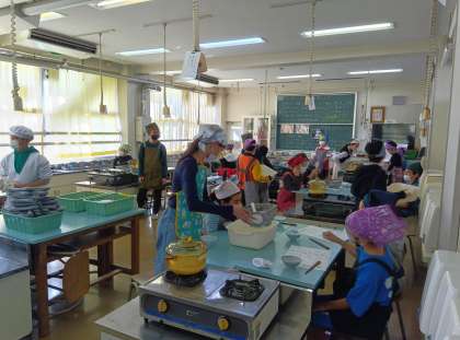 透明な鍋を使って、お米がどのように変化するのかを観察しながら、炊飯について学びました。美味しくご飯が炊けて、みんなで試食しました。