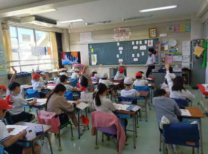 漢字と漢字を組み合わせて新しい漢字を作ることで、楽しく漢字学習に取り組みました。例えば、日と門を合わせて間、石と山を合わせて岩、などです。問題を解くことを楽しんだあとは、2つの漢字を組み合わせて漢字を作る、漢字クイズを一人一人が考えました。学習した漢字からたくさんのクイズができました。