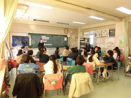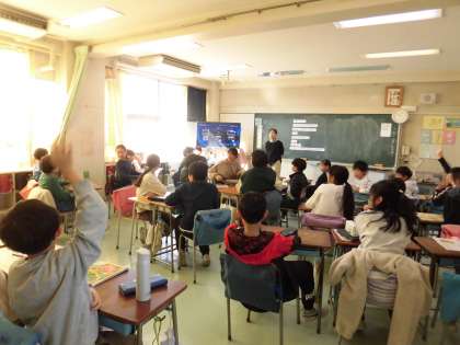 5年生の家庭科では「食べて元気!」の学習をしています。今日は栄養士の先生から毎日の給食に関連した栄養講和がありました。給食の献立を作る際に気を付けていることなどの話を聞き、栄養のバランスだけでなく、安全・衛生、料理の組み合わせや、予算、嗜好、季節感、地元産・国産の食材など様々なことに配慮されたメニューであることを学びました。質問コーナーでは、給食で大人気のジャンボ餃子は何人くらいの調理員さんでつくっているのか?何時くらいから作っているのか?といった質問など、たくさんの質問がありました。「給食ってすごーい!」「給食作るの大変なんだね〜」と興味津々で話を聞いている姿がみられました。感謝の気持ちをもって、おいしい給食をいただくことができます。