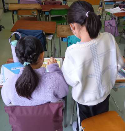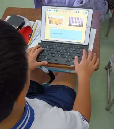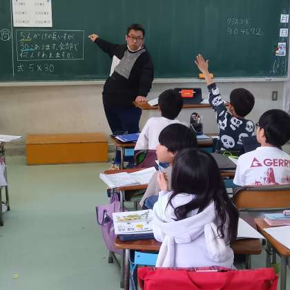 3年生の授業風景です。単元名は「かけ算の筆算を考えよう」です。一桁?二桁の計算の仕方を考えることで、かけ算の筆算のしくみ、やり方を身につけました。積極的に手を挙げて考えを発表し、友だちの考え方もしっかりと聞いて、理解を深めていきました。