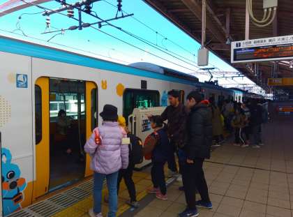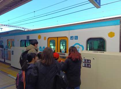 なんと、帰りの電車はもころんの電車でした。「もころんだ!!」と子どもたちは大喜びです。マナーを守って静かに電車に乗ることができました。