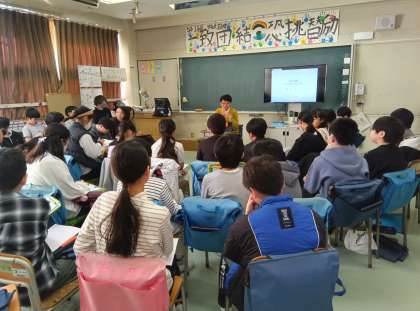 台湾での外国人への対策は?日本に来て困ったことは?戦争についてどう思いますか?など子どもたちからたくさんの質問が出され、それに答えていただきました。