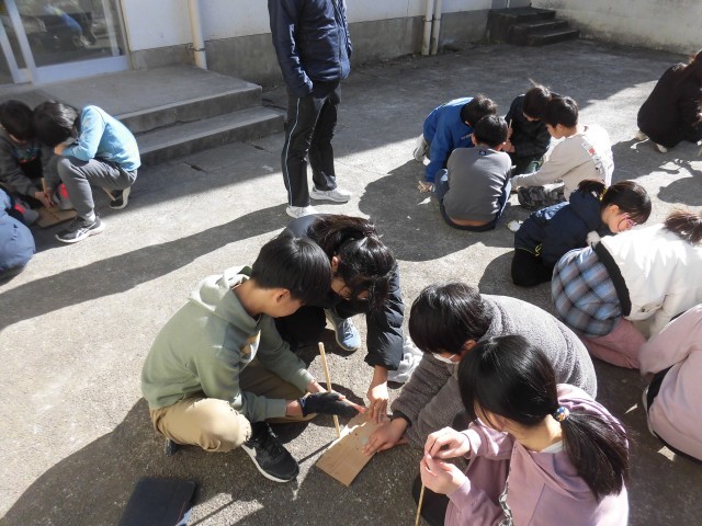 今日は、4年生から6年生の児童によるクラブ活動が行われました。校庭、体育館、教室等で各クラブの共通の興味や関心をさらに深めていきました。アウトドアクラブでは木と木を摩擦させる方法の火おこし体験をしました。科学クラブでは、入浴剤を使ったロケット(バスボムロケット)を作り、校庭で実験しました。バドミントンクラブでは、試合を行い、応援する声が体育館に響き大変盛り上がりました。どのクラブも、楽しい活動に時間を忘れて取り組んでいる様子がみられました。今年度のクラブ活動も残すところあと1回となりました。学年を超えて協力して、絆を深めることができています。