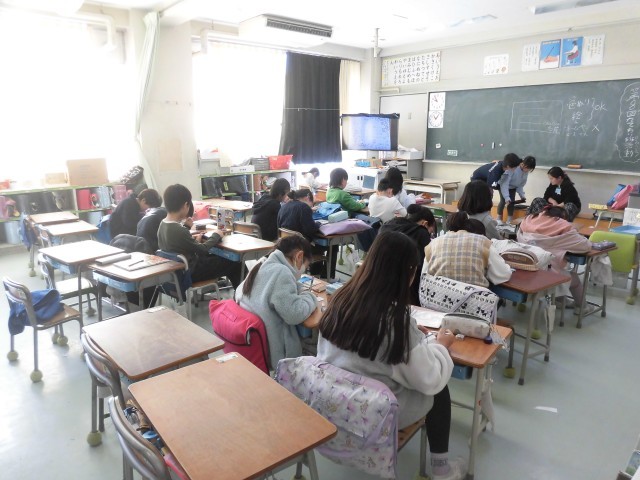 今日のたて割り班活動は、1年生から5年生で行いました。各教室に分かれて、1年間仲良く活動してきた6年生に感謝の気持ちを伝える準備を行いました。5年生が中心となって取り組み、5年生が1年生に寄り添い、優しく教えてあげたり、声をかけてあげる様子が見られました。今年度、楽しんできた6年生と一緒にたてわり班活動できるものあと1回となりました。しっかりと絆を深め、6年生に感謝の気持ちを伝えます。
