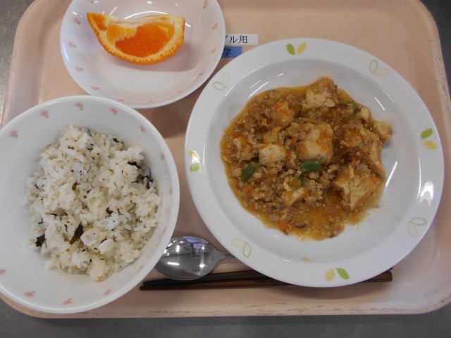 わかめごはん 生揚げのそぼろ煮 デコポン 牛乳