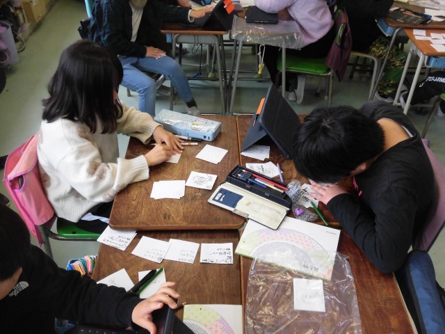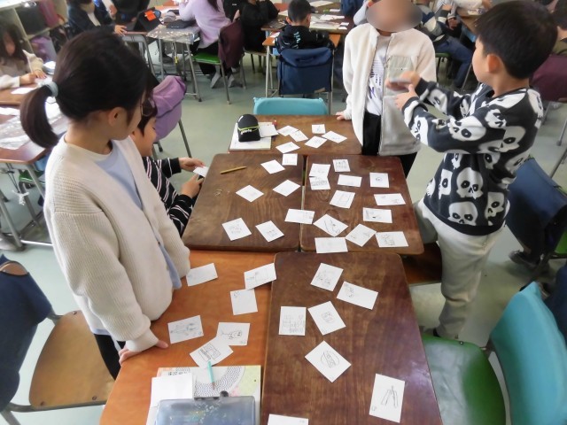 3年生の日本語で「世田谷かるた」を作る学習をしています。グループで世田谷にあるものでかるたを作りました。電車、公園、お店など、さまざまな物に恵まれた世田谷を題材に、次々と読み札と取り札を作っていきました。出来上がったかるたをグループで楽しむ様子も見られました。