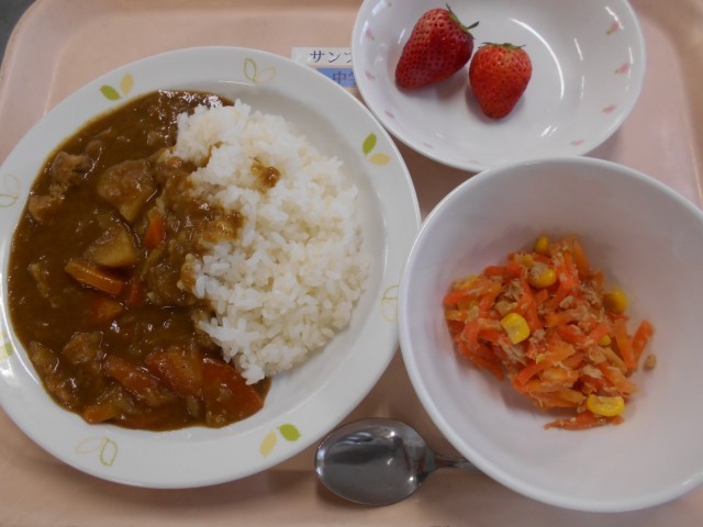 カレーライス にんじんサラダ いちご 牛乳