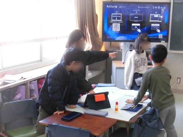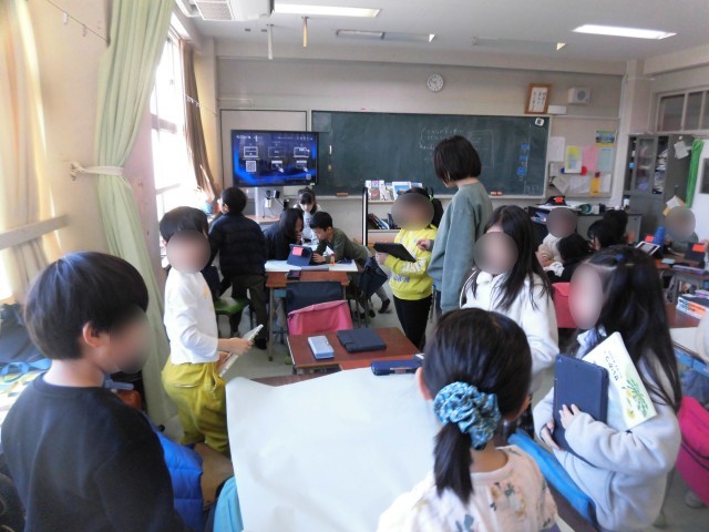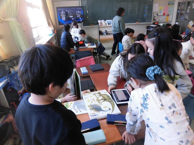 2年生が、来週、恐竜博物館見学を予定しています。今日は見学の前に、グループで恐竜について図鑑などを使ってしらべてまとめました。タブレットを使い下書きして、みんなで協力して模造紙に清書しました。伝えたいことがわかりやすく、しっかりと伝わるように、文字の大きさや書き方にも工夫しながら書きました。恐竜についてたくさん調べて、今度の見学もますます楽しみになったようです。