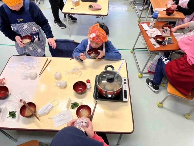 昨日収穫した野菜は、調理実習で使いました。大根を丁寧に切ってみそ汁にし、ほうれん草(小松菜ではありませんでした。すみません。)は炒めました。自分たちで育てて、調理したので、とてもおいしかったそうです。