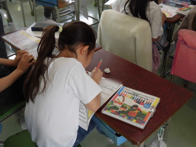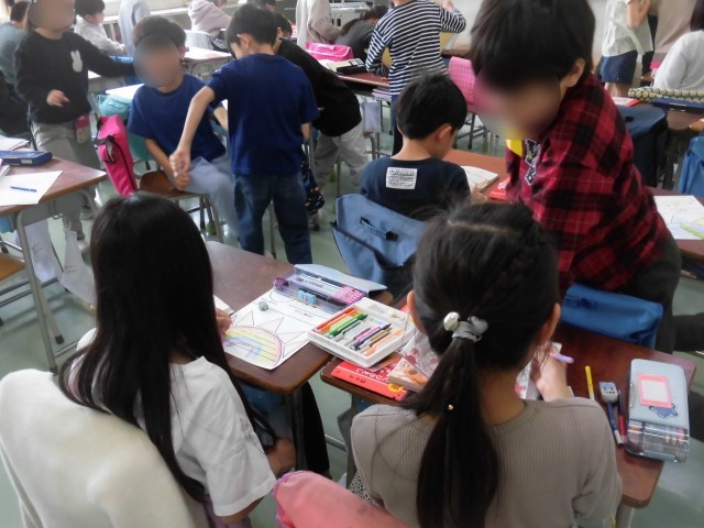 3年生のクラスでは自己紹介の「よろしくねカード」を書きました。好きな食べ物、好きな教科、好きな遊びを書いたり、先生や友だちによろしくね!の気持ちを込めたメッセージを書きました。似顔絵も描いて、カラフルに仕上げていました。新しいクラス、新しい友だちとこれから1年間一緒に学校生活を送り、みんなで絆を深めていきます。