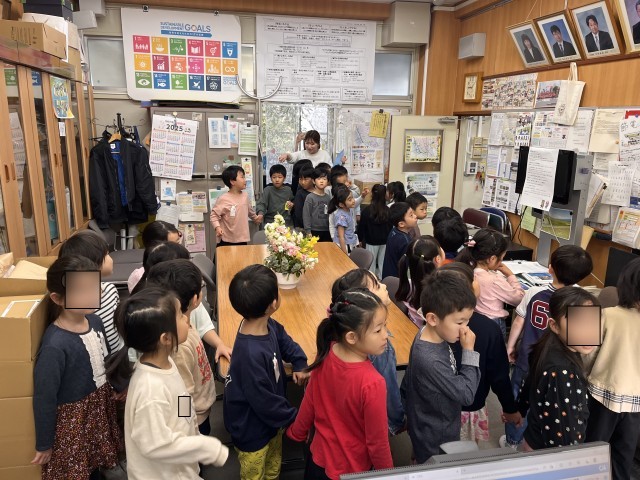 1年生が学校探検をしました。授業中なので、静かに歩かなければいけないと、気を付けていました。校長室では、歴代校長の写真に興味津々でした。明正小の72年の歴史を感じてくれました。