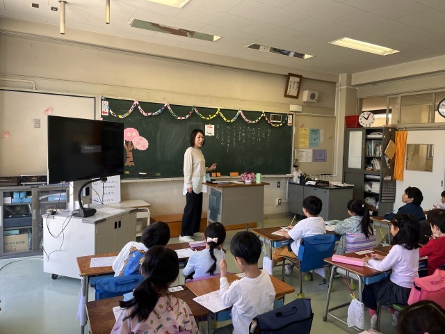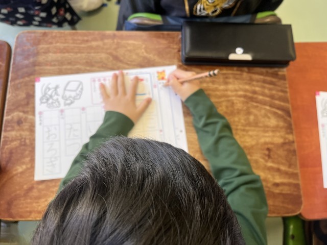 1年生は、ひらがなの「こ」を学習していました。「ヘリコプター」「コアラ」「たけのこ」…と「こ」のつくことばを集めたり、「書き始め」はどこからだろう?と探したりと、書いて練習するだけではなく、ことばに親しんだり興味を高めたりできるようにしています。ご家庭でも「ことば集め」や「しりとり」など、楽しんでみてください。