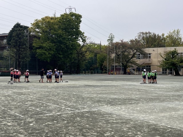 5年生が体育でリレーに取り組んでいます。テイクオーバーゾーンを効果的に使って、スムーズにバトンパスができるように練習しています。グループで話し合って練習を積み重ね、タイムが縮まるといいですね。