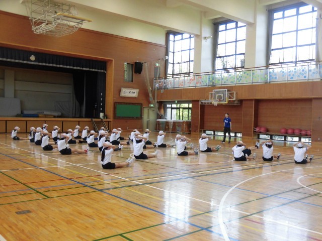 今日は、日本コオーディネーショントレーニング協会の講師の先生をお迎えして、5年生がコオーディネーショントレーニングを体験しました。くの字体操、S字運動などはじめ、2人で手をつなぎ、つま先を合わせて座った状態から起き上がるという協力立ちにも挑戦しました。神経に刺激となるトレーニングをたくさん体験することができました。講師の先生から「できなくてもいいよ、やろうとすることが大事!」と教えていただき、できなくても何回もチャレンジする様子がみられました。とても楽しく、あっという間に時間が過ぎ、気持ちよく体を動かすことができました。