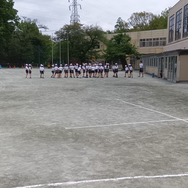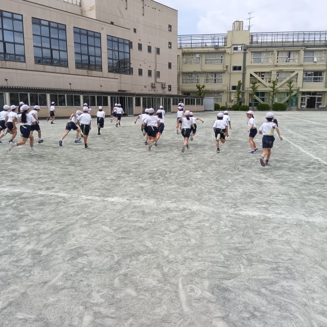 5年生は、体育で短距離走・リレーの学習をしています。2人ペアでネコとネズミゲームから始まり、お互いに全力で走りながらしっぽを取ることに取り組んでいます。これがテイクオーバーゾーン内でのバトンパスにつながります。声を掛け合い、タイミングを合わせながら集中して学習しています。