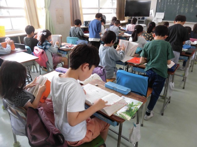 3年生の国語で、国語辞典の使い方を学習しました。どのような時に利用するのか、どのように調べるのか、どのような順番で言葉が並んでいるのか、実際に国語辞典を使って確認しました。「言葉の並びは五十音順」という基本を押さえながら、濁音、長音、ひらがなとカタカナの場合の並びも調べました。いろいろな言葉を国語辞典で調べることができました。言葉は知っていてもいろいろな意味があることを知ったり、いままで知らなかった言葉に出会うことができることで、改めて言葉の面白さを感じられるよう、国語辞典を活用していきたいものです。