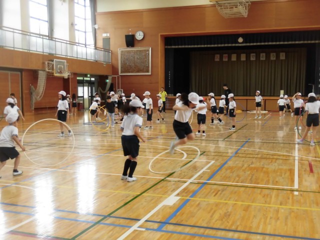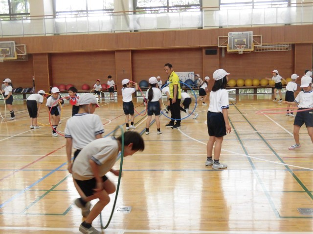 本日も、日本コオーディネーショントレーニング協会の講師の先生をお迎えして、3年生と5年生がコオーディネーショントレーニングを体験しました。くの字体操、S字運動などはじめ、体だけではなく、脳や神経にも刺激を与える運動を行いました。フラフープを使って、動くフラフープをくぐり抜ける運動や飛び越える運動もしました。「できた!できた!!」と大喜びで講師の先生に報告する様子が見られました。とても楽しいトレーニングとなり、気持ちよく体を動かすことができました。