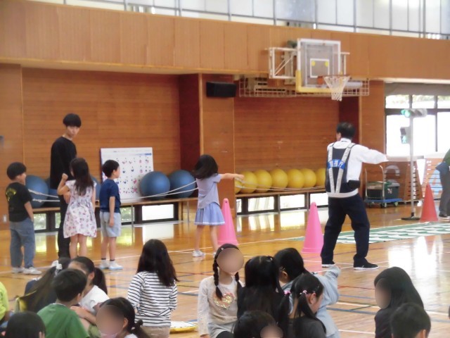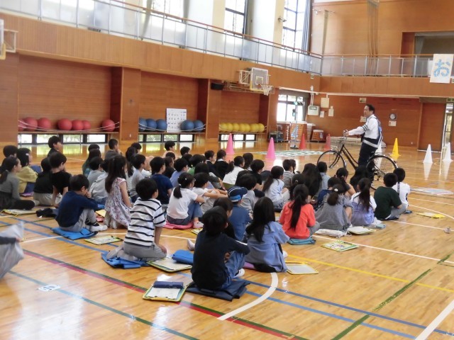 今日は、成城警察署の方を講師にお迎えして、3年生の自転車交通安全教室を開催しました。教室ではDVDを見て自転車に乗るときの交通ルールをしっかりと学び、体育館では自転車の点検や安全な乗り方や降り方についても実技で学習しました。自転車に乗る前の点検は、「ぶたはしゃべる」の確認です!「ぶ」ブレーキを確認する、「た」タイヤを確認する、「は」ハンドルを確認する、「しゃ」後ろ・ペダルの反射板を確認する、「べる」ベルを確認するの5つの確認事項を学習しました。〇✕クイズにも挑戦して、最後には「交通セーフティー検定認定証」をいただくことができました。交通ルールを正しく守り、安全に気を付けて自転車に乗ってほしいです。ご家庭でも、ぜひお子さまと一緒に交通ルールについて確認してみてください。