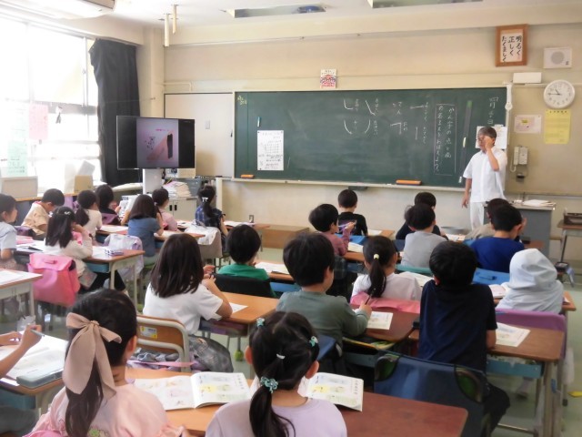 2年生では「漢字の点と画の名前」について学習しています。文字の線はや点は、(1)点、(2)横画、(3)縦画、(4)曲がり、(5)折れ、(6)左はらい、(7)右はらい、(8)そりの8種類で漢字が構成されていることを学習し、文字の構成の面白さも感じることができました。日頃から字を書く時にも「点や画」を気にしながら丁寧に書くことができそうです。