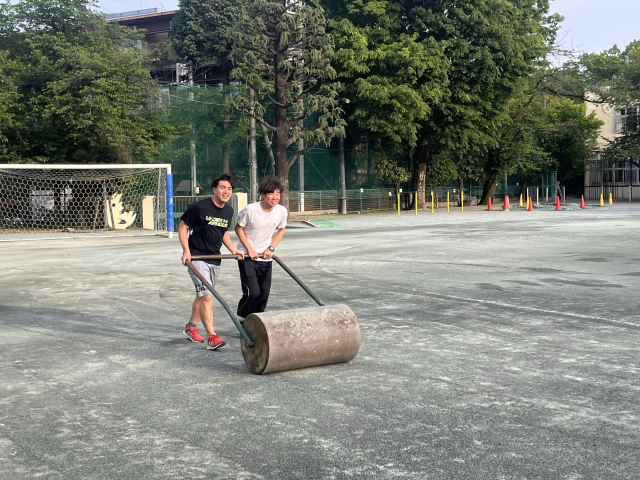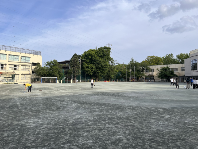 子どもたちが下校した後に、教職員で校庭の整備を行いました。新しい砂を入れ、できるだけ平らにしました。5月になり、運動会の月になりました。子どもたちの活躍が楽しみです。