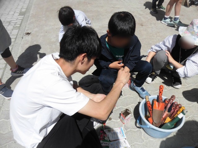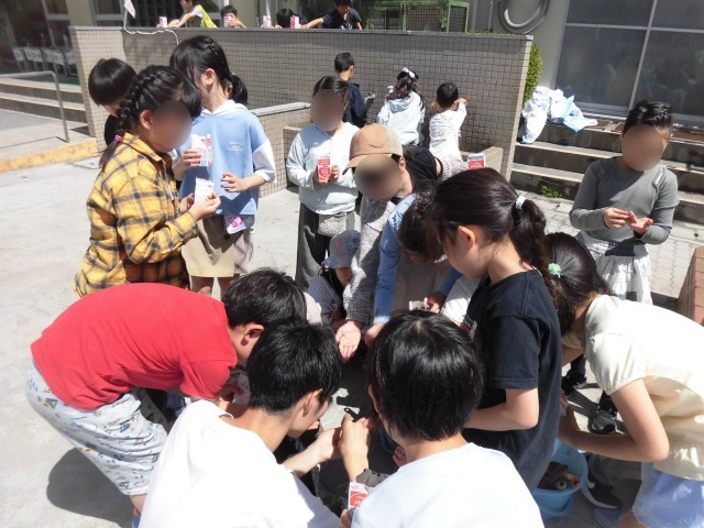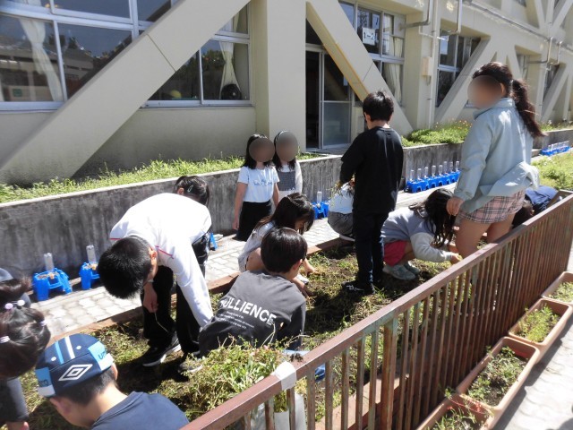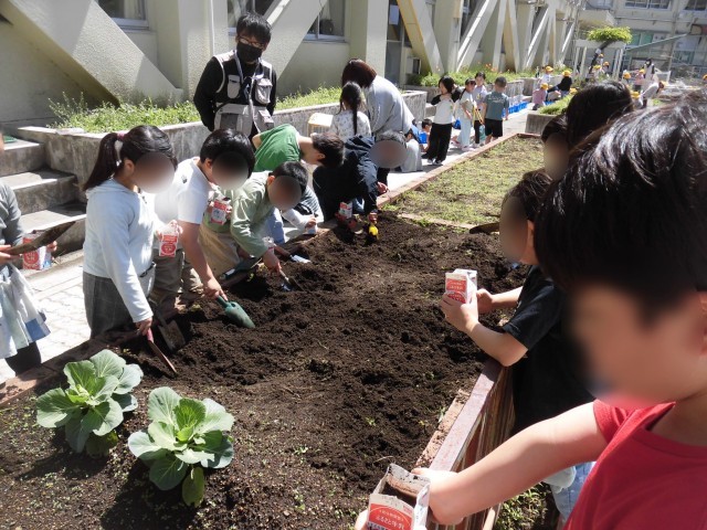 3年生の理科では、ホウセンカを育てます。今日は、牛乳パックを利用して、ひとりひとり種を植えました。まず、花壇の雑草を抜いて、土を耕し、牛乳パックの植木鉢に土を入れました。種をまいて、たっぷり水やりをしました。ホウセンカの種はとても小さく、この小さな種からどのように芽が出て大きく育つのか、とても興味がわいてきたようです。