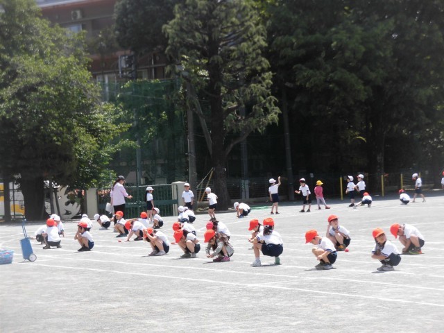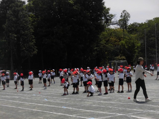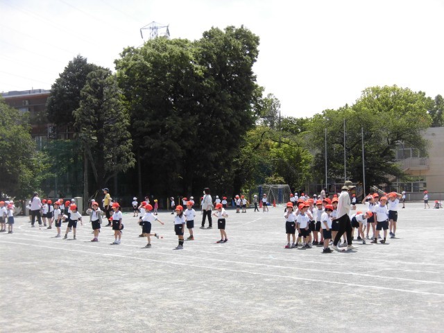 3時間目に1年生が運動会の練習に取り組みました。学年全体で、隊形の作り方や移動の仕方を確認しました。それぞれのクラスで担任の指示を聞いたり、学年全体にされる指示を聞いたり、1年生にはまだまだ難しいことをこなさなくてはなりません。広い校庭で集中して話を聞き、周りにも注意を払いながら動きを覚えようとする姿は、まさに「一生懸命」でした。お水休憩になるとそれまでの緊張が解けて笑顔が見られました。初めての運動会で素敵な演技を見せられるように1年生全員ががんばっています。