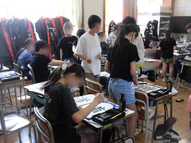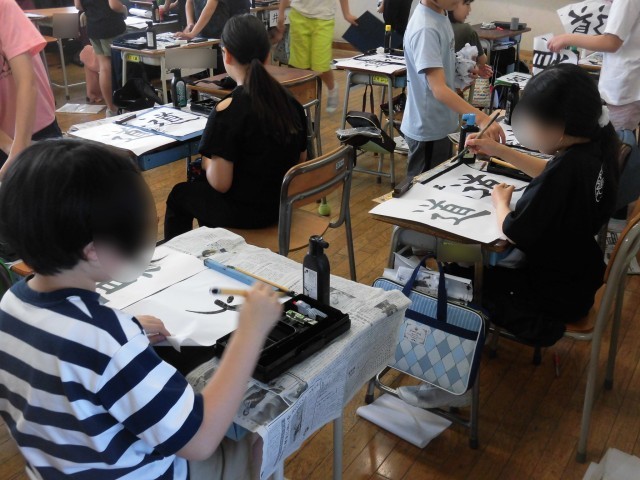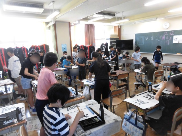 5年生が書写の時間に「道」の文字を毛筆で練習しました。「辶(しんにょう)」を美しく書くために、しっかりと先生の説明を聞いて、お手本を見ながら丁寧に書きました。バランスよく書くのが難しく、苦戦している様子も見られましたが、一生懸命に繰り返し練習し、集中して取り組むことができました。
