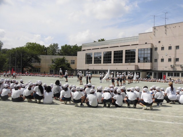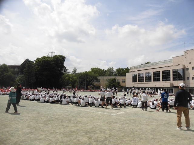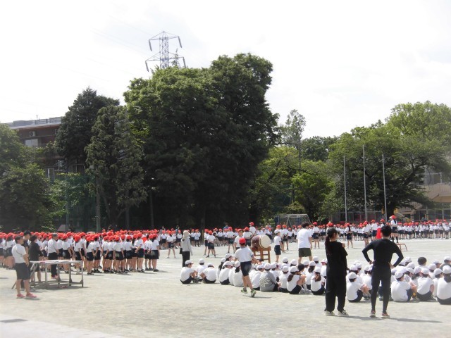 運動会全校練習では応援合戦の練習も行いました。赤組・白組それぞれの応援団長から応援の仕方を教えてもらいました。応援団の迫力ある応援に、赤組も白組も声をあわせて、応援の練習ができました。かっこいい応援に、運動会に向けて気分もますます高まってきたようです。赤組と白組、お互いに励ましあいエールを送る様子にとてもほっこりしました。