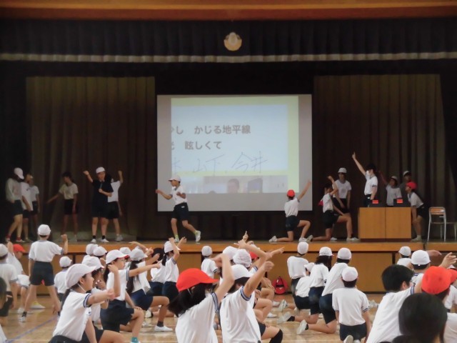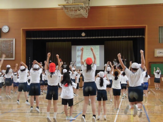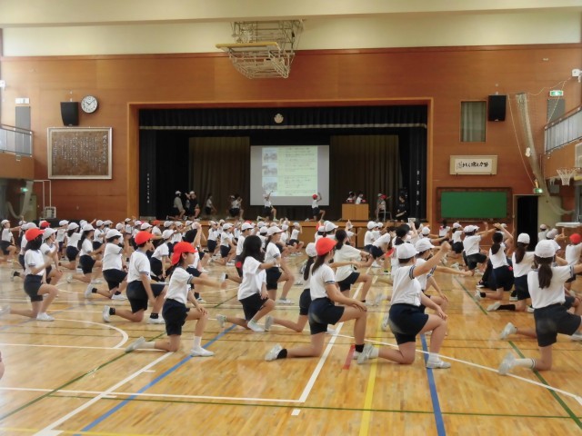 6年生は、全校練習に引き続き、表現発表のダンスの練習を行いました。運動会実行委員が話し合い、テーマや振り付けを考えました。今日は、実行委員から振り付けを教えてもらい、みんなで練習しました。みんなで動きをそろえるところなど、細かいところまで振り付けの説明がありました。ひとりひとりが真剣に練習し、あっという間に振り付けも覚えているようです。さすが6年生です!
