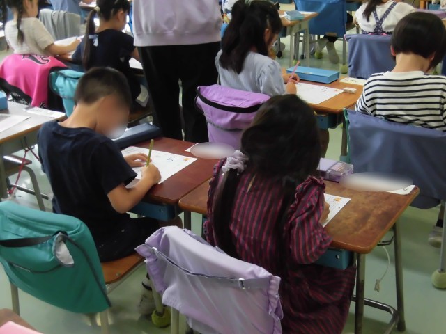 1年生のひらがなの学習が進んでいます。今日は「ら」の書き方の学習をしました、「ら」がつくものについて発表し、書き順やバランスよく書くポイント学びました。ゆっくりと真剣にワークシートに「ら」を何度も書いて練習しました。鉛筆を正しく持って、姿勢よく学習する姿がみられました。