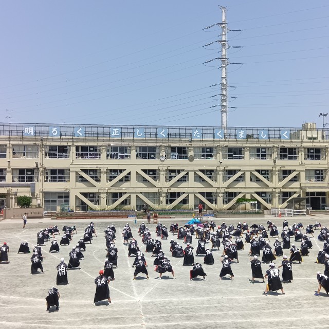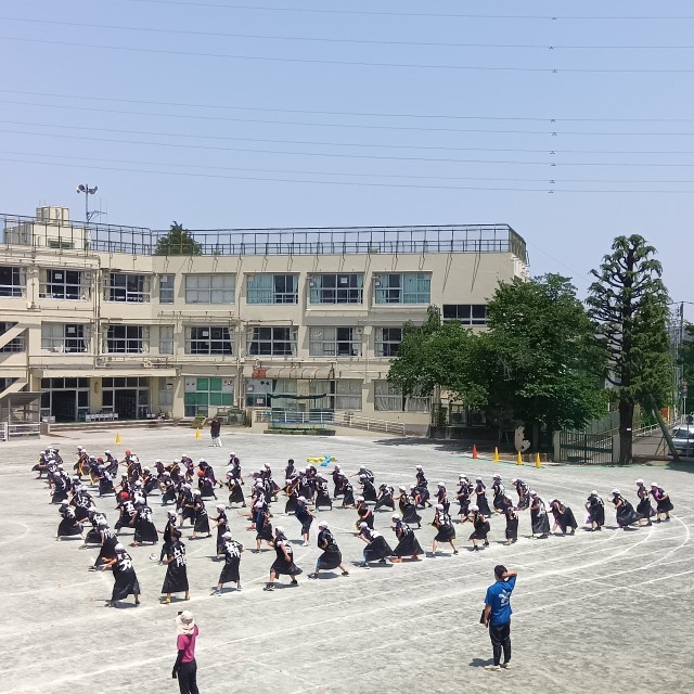 はじめの言葉の後、動きの確認をして児童鑑賞日前最後の通し練習に取り組みました。表現構成が非常に工夫されていて、見る人に精一杯伝えようとする子どもたちから目が離せません。