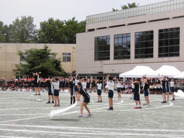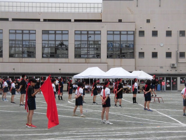 いよいよ運動会(児童鑑賞日)がはじまりました。赤組白組の熱い応援合戦で開幕しました!
