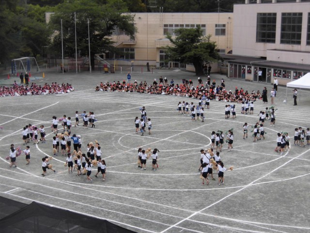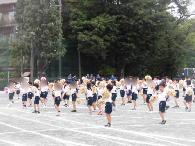 入学してわずか2か月の1年生がニコニコ笑顔があふれる元気いっぱいのダンスを披露してくれました。キラキラのポンポンを持って、隊形移動もばっちりでした。見ているみんなも笑顔にして、『ONEダーランド』の世界へ連れて行ってくれました。