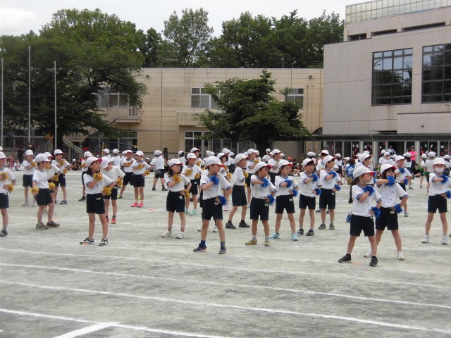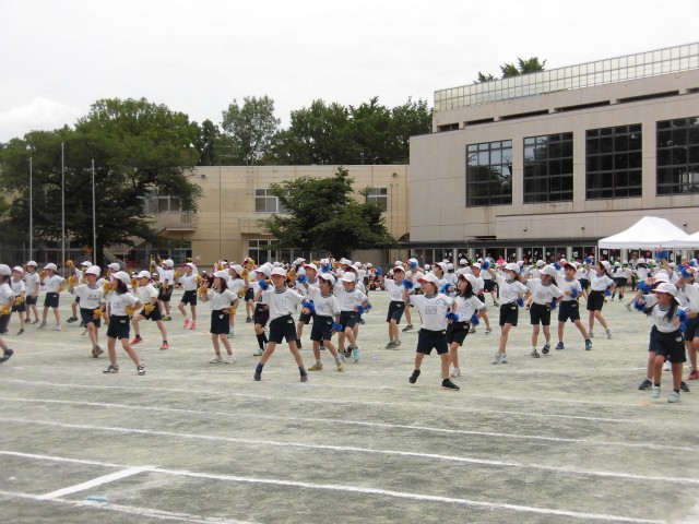 2年生は「I wonder」の曲に合わせてダンスをおどりました。2年生が気持ちをあわせて、キレキレのダンスを見せてくれました。腕にはキラキラのリストバンドをつけて、一生懸命に楽しく踊ることができました。明正小学校の空に大きな虹がかかりました!