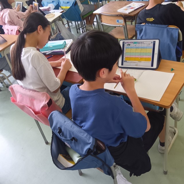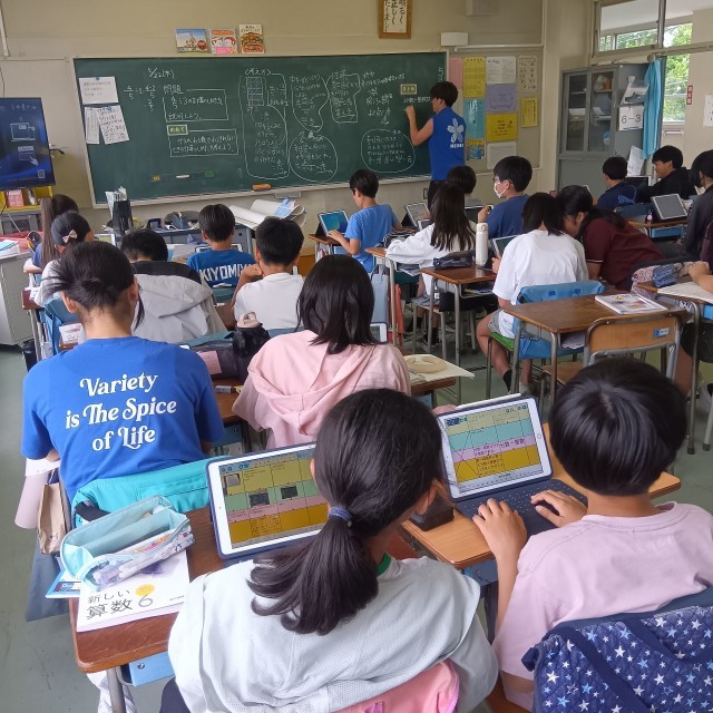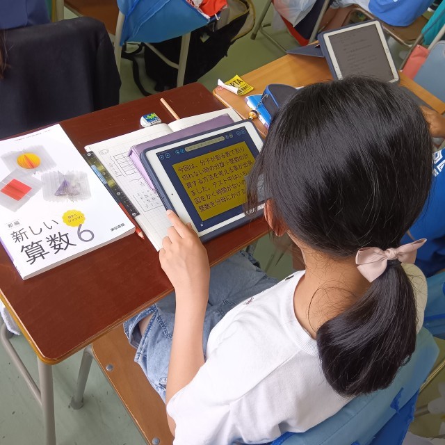 形式的に答えを求めるのではなく、1つの文章題から式を立て、計算の仕方を考えて説明する学習です。子どもたちはそれぞれ既習事項を生かしながら集中して考えました。学習のまとめをした後、振り返りもしっかりとしました。この振り返りが、次の学びにつながっていきます。